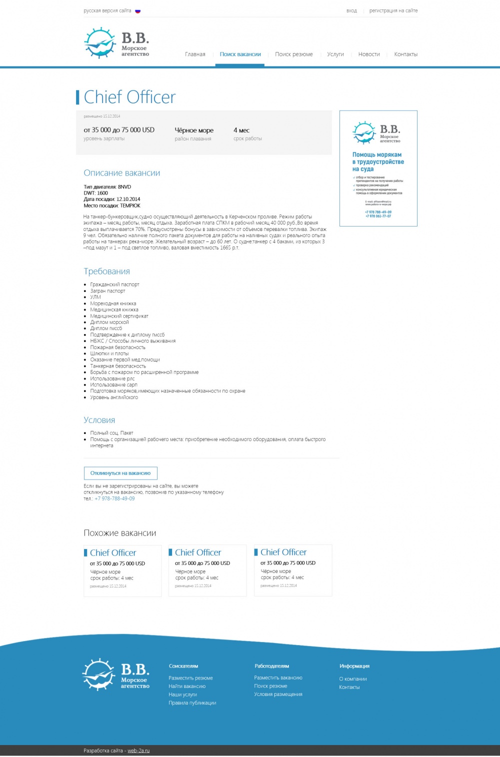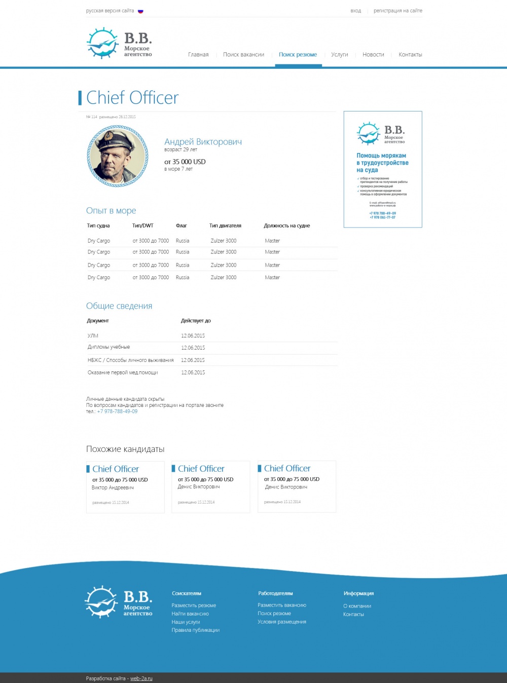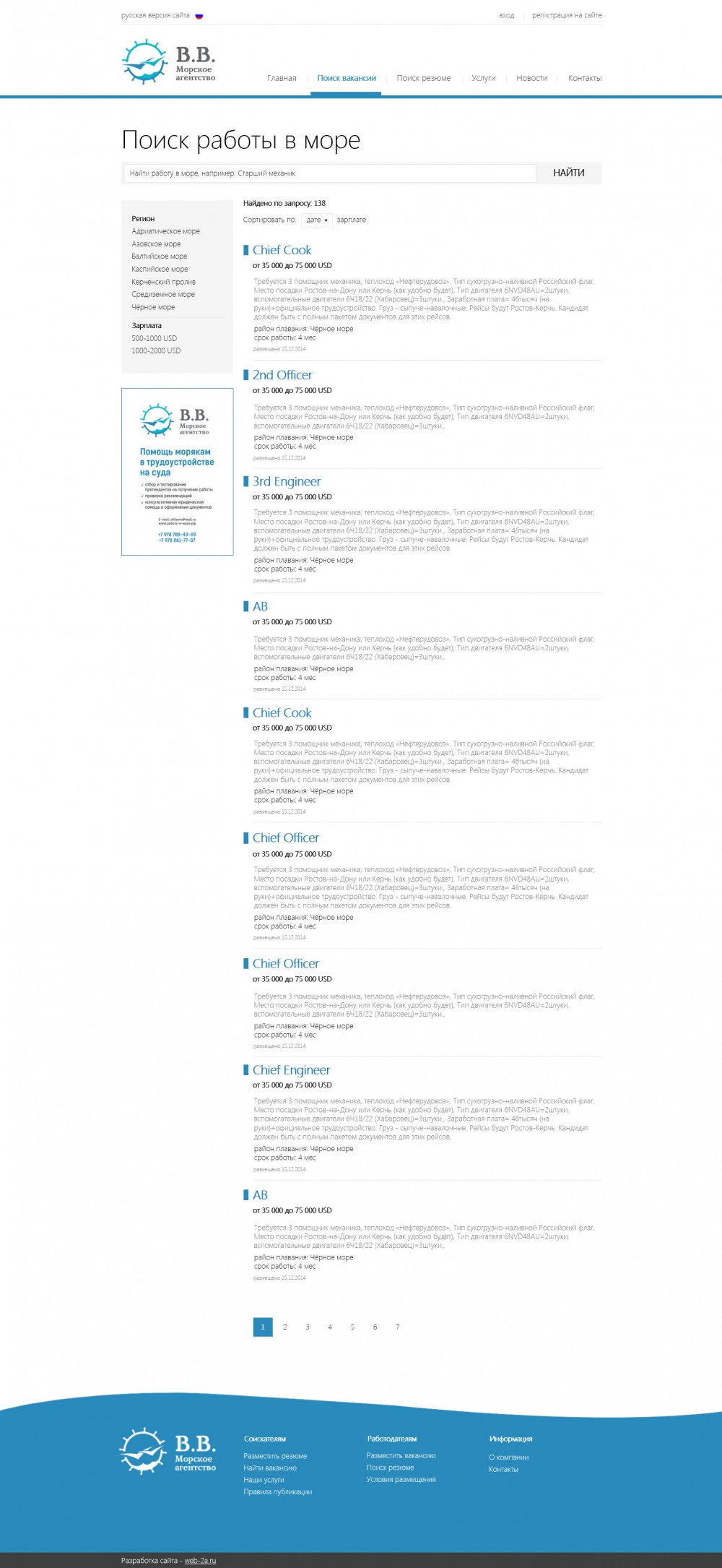 «Морское агентство ВВ » входит в крупнейшую Международную группу и отвечает за подготовку и подбор морских экипажей на обслуживаемые суда, а так же на суда крупнейших судовладельцев и судовых операторов.
