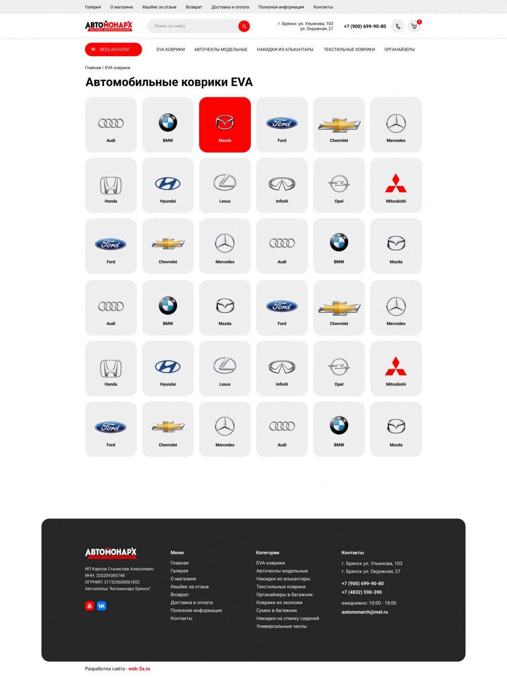 Интернет-магазин текстильных автомобильных ковриков