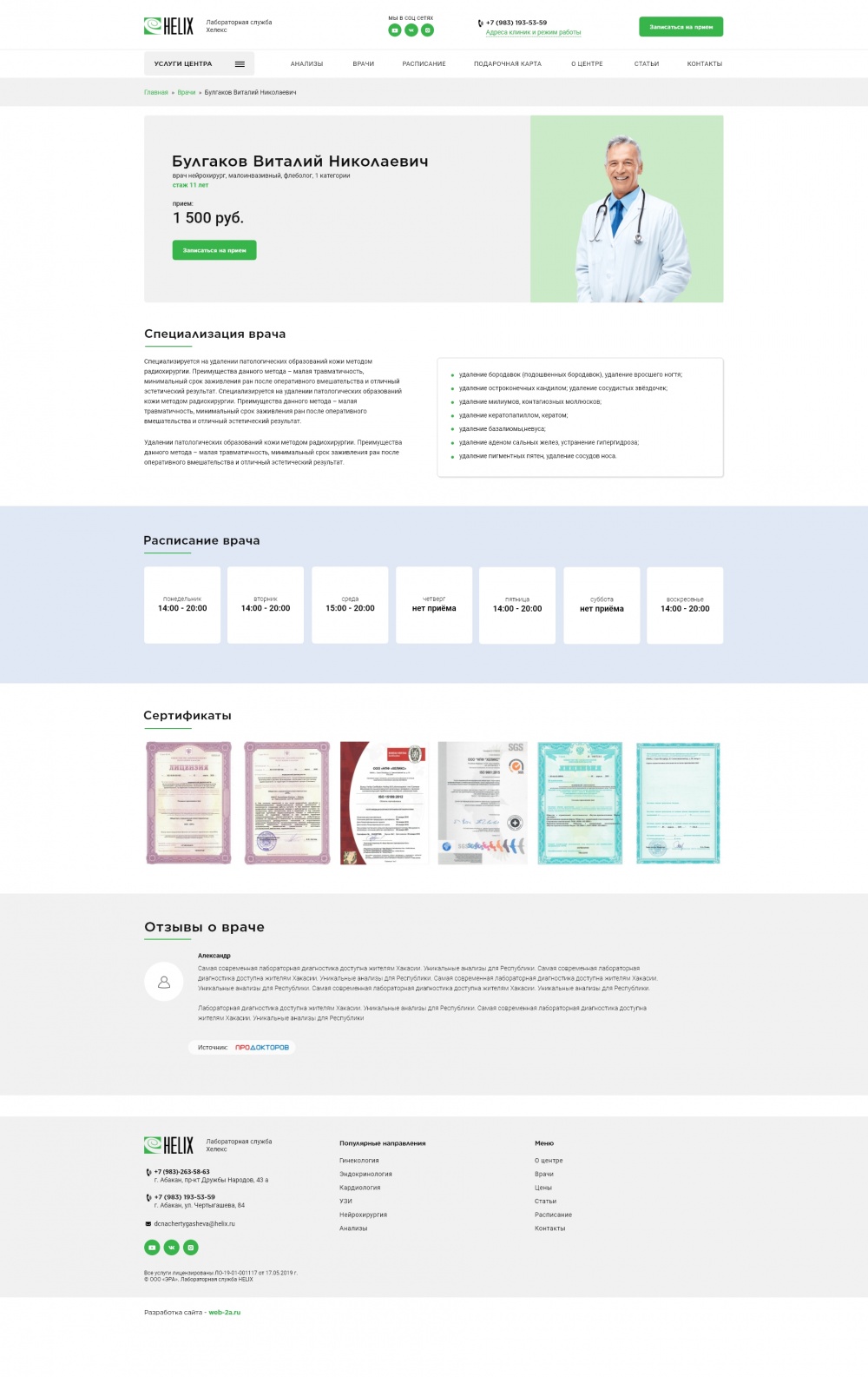 Сайт медицинского центра