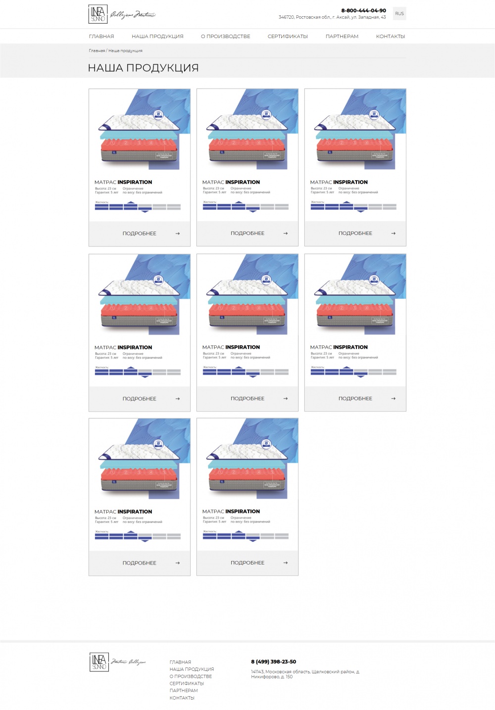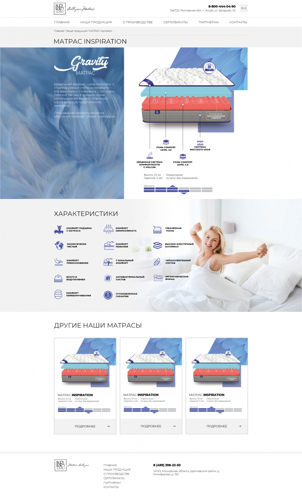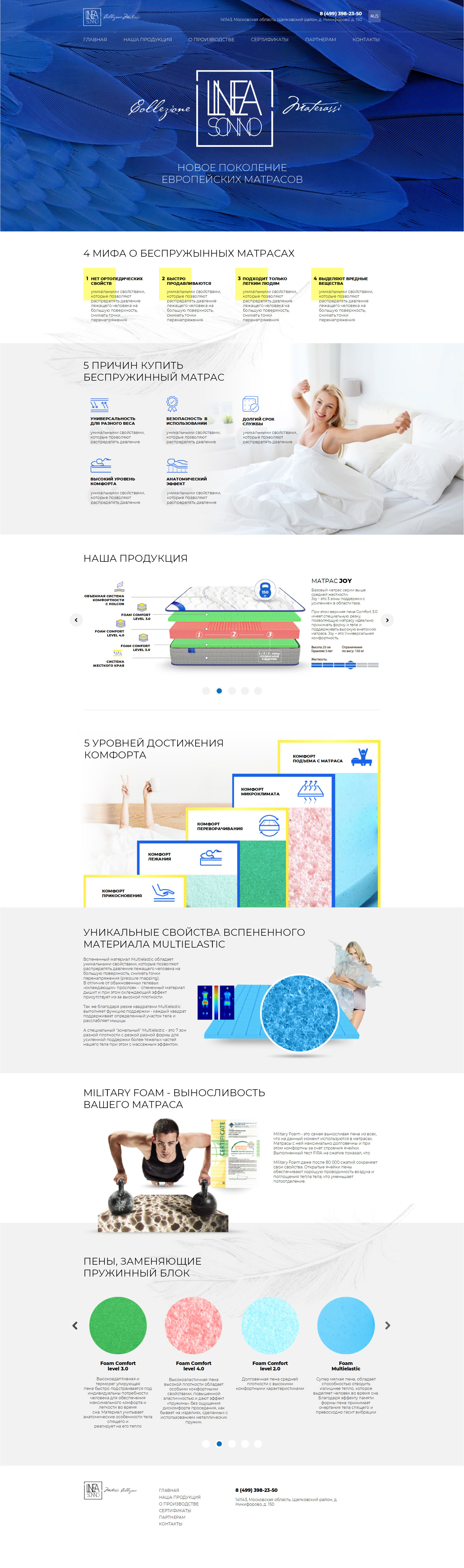 Корпоративный сайт производителя матрасов
