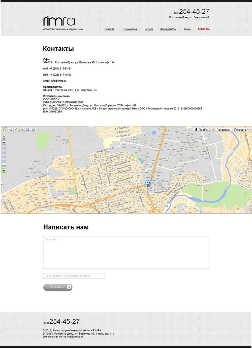 Оставьте обращение в форме обратной связи и наш менеджер свяжется с Вами в течении 30 минут в рабочий день или позвоните нам по телефону 7 (863) 226-56-27