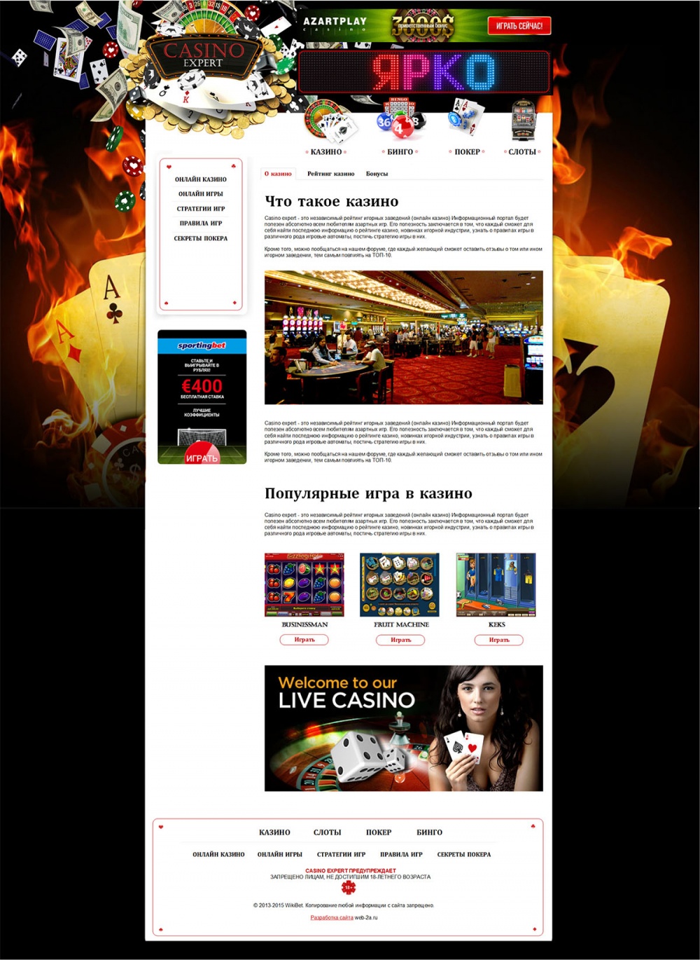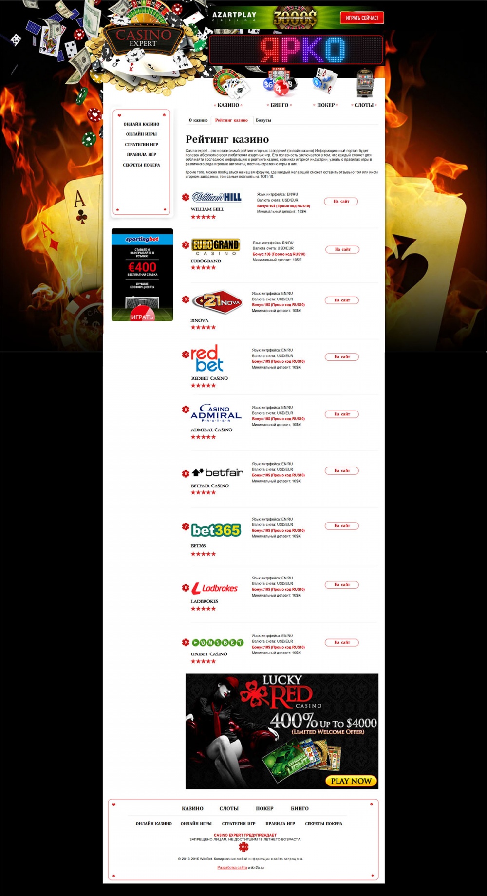Путеводитель по новостям игорной индустрии. Актуальный рейтинг интернет-казино и онлайн-покера. Сайт разработан специально для всех любителей казино онлайн.