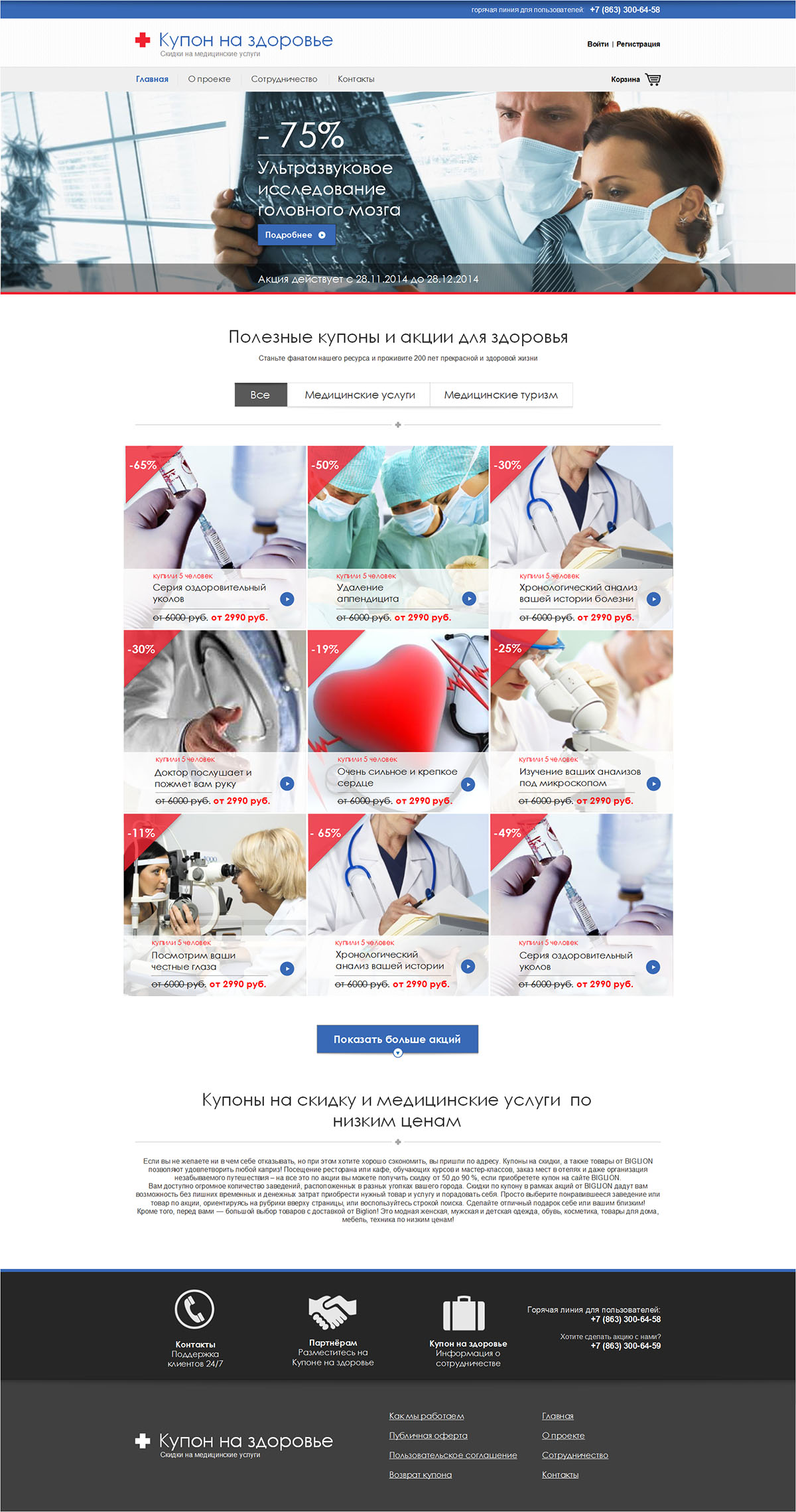 Главная / Наши работы / Сайт визитка / Промо-сайт скидок на медуслуги