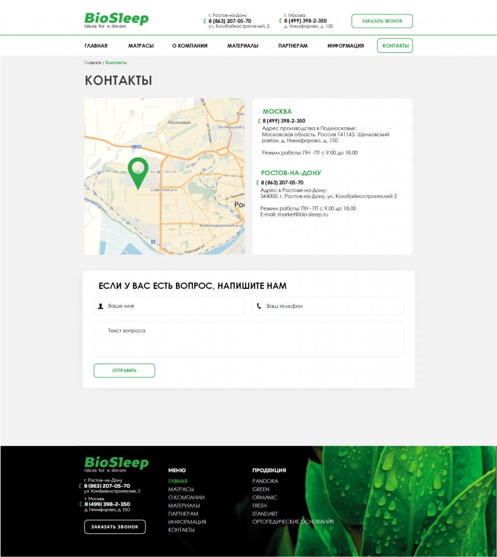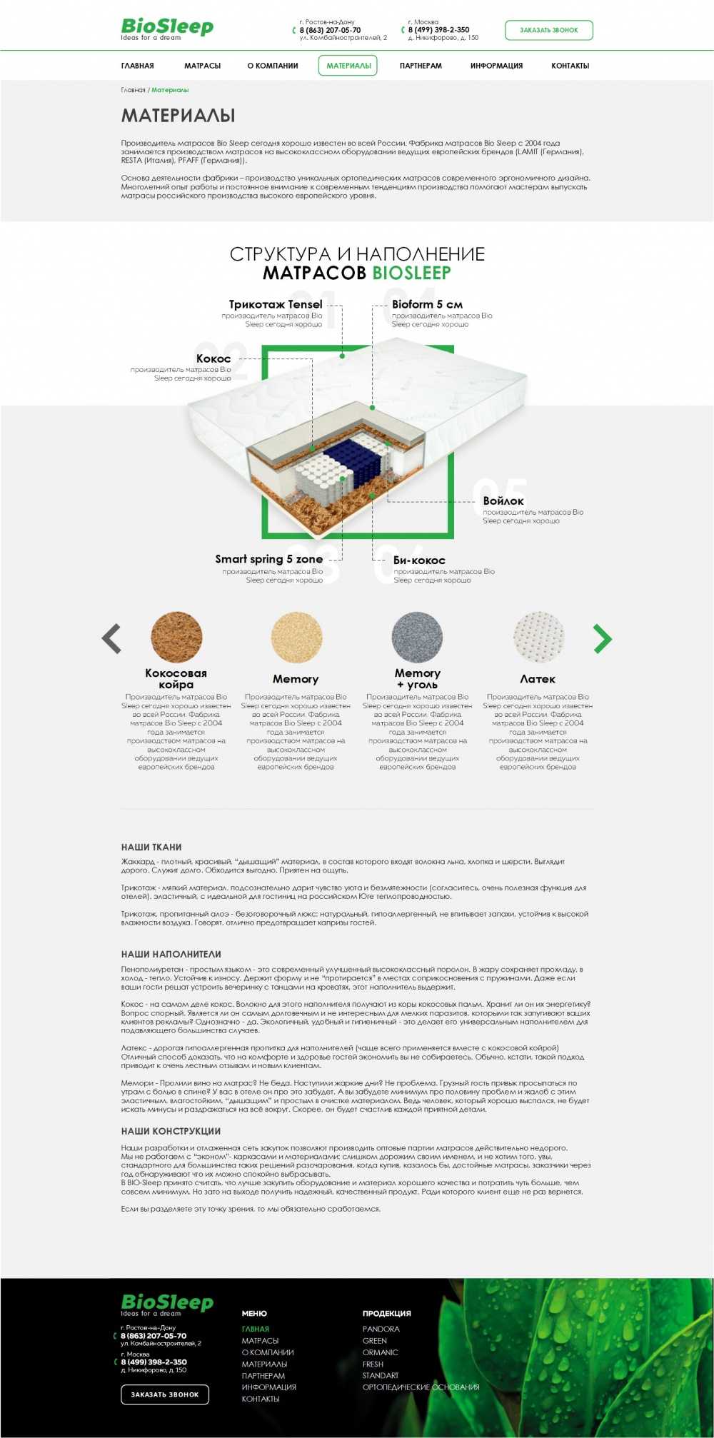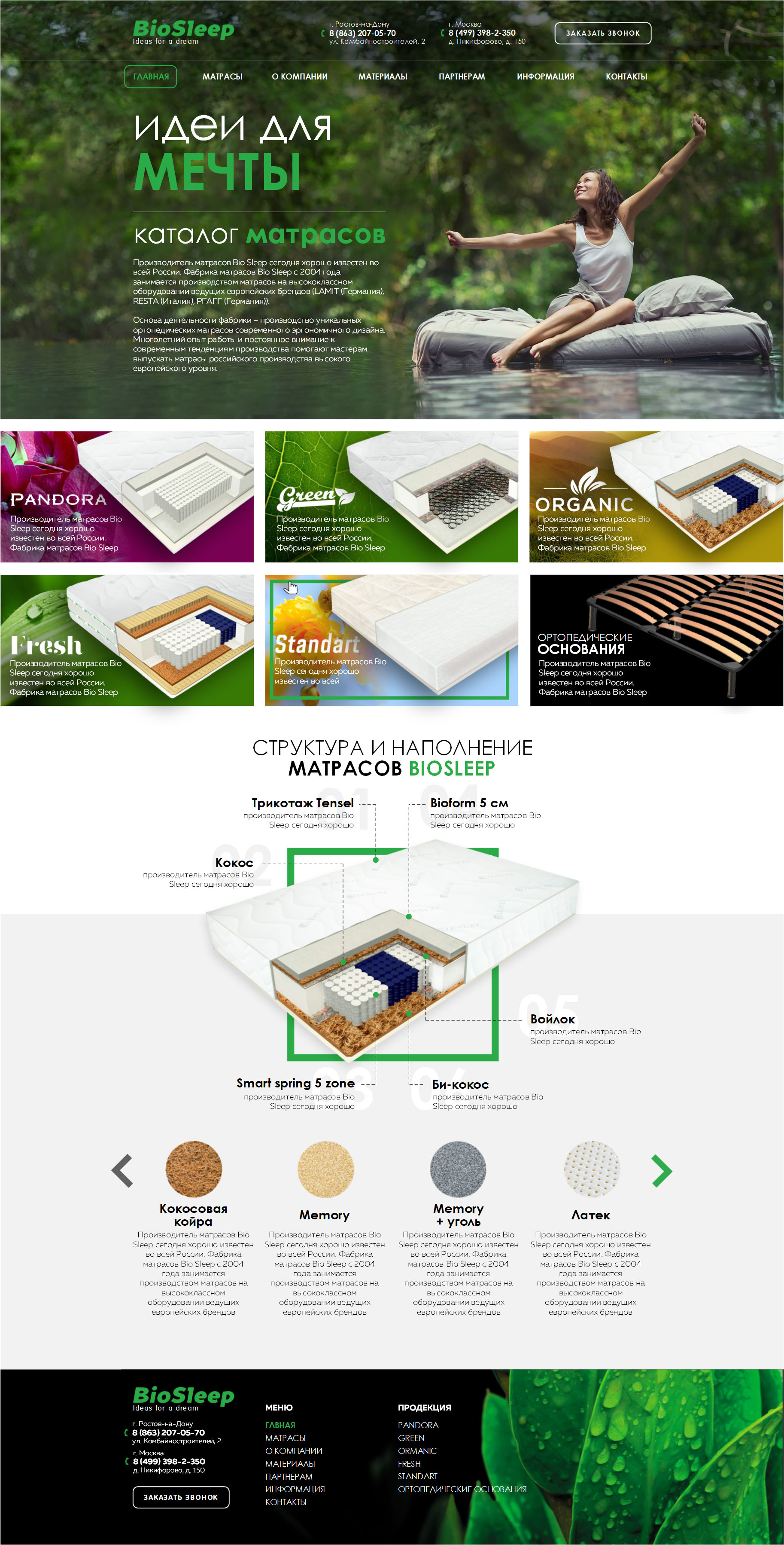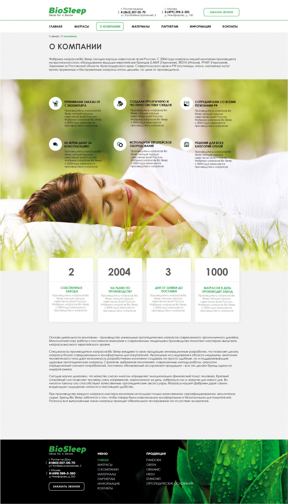 Главная / Наши работы / Сайт каталог / Сайт производителя матрасов Bio-Sleep
