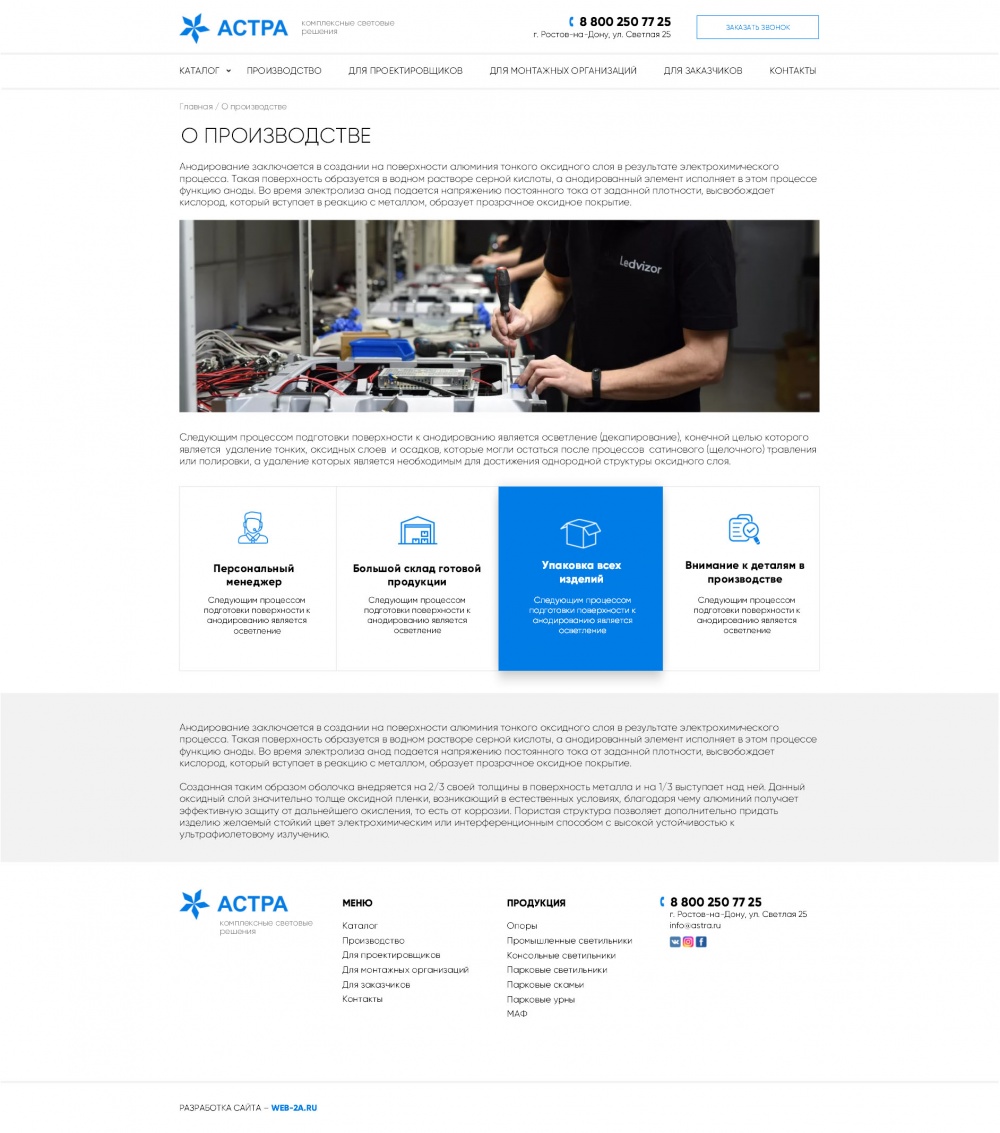 Корпоративный сайт производителя световых решений