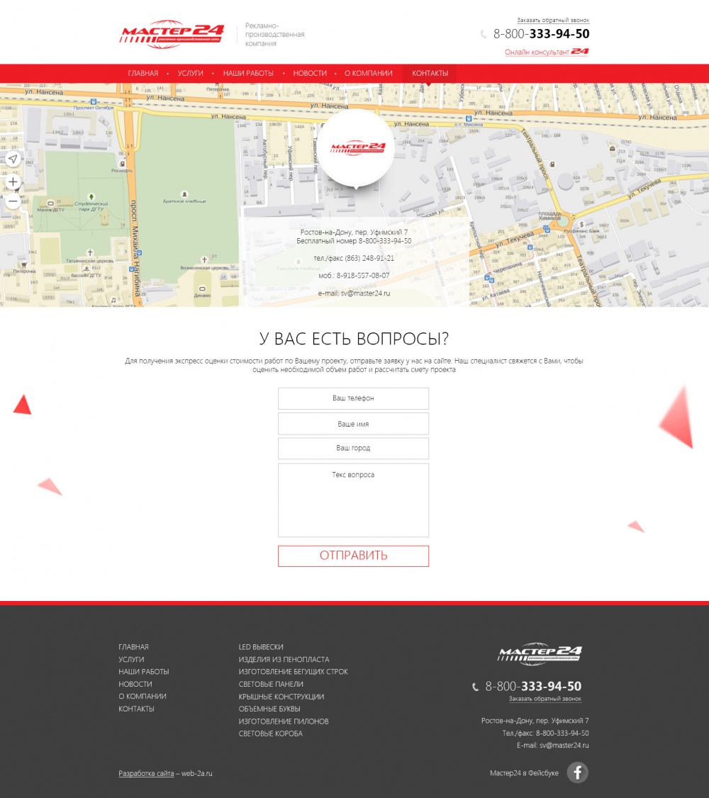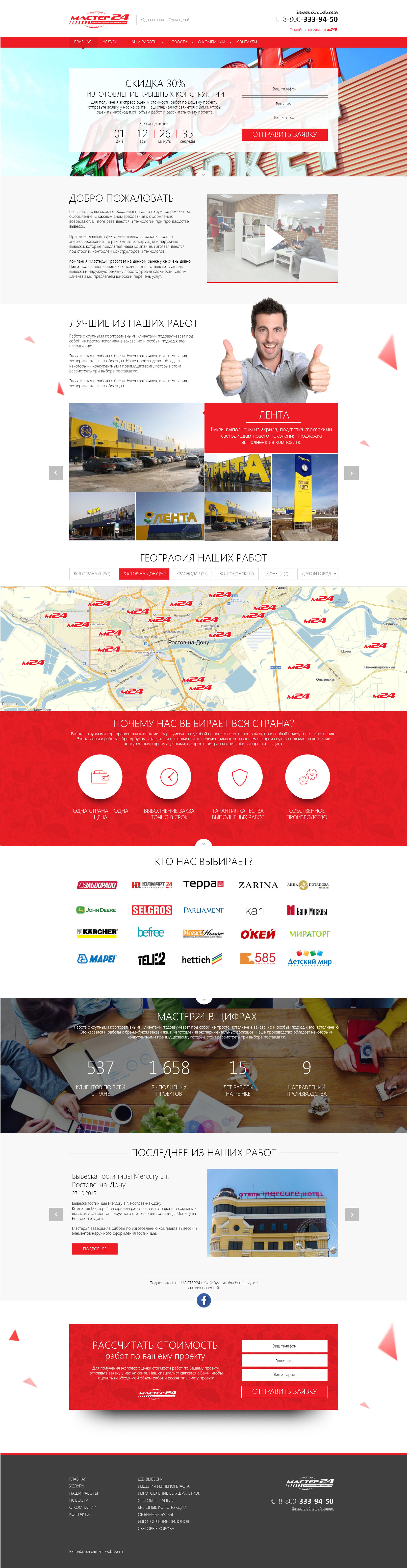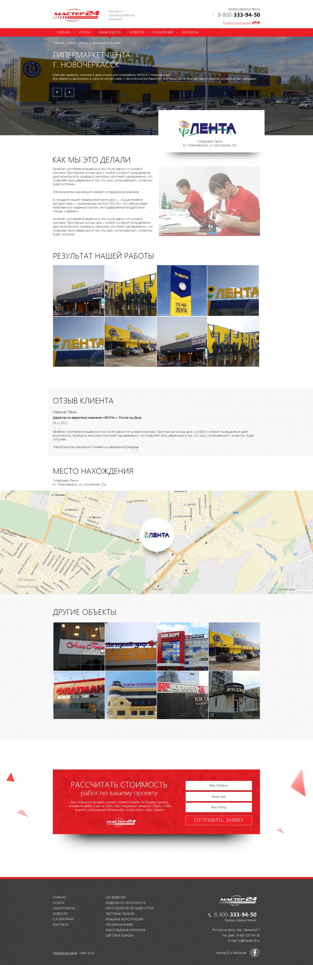 Компания Мастер24 изготавливаеть стенды, вывески и наружную рекламу любого уровня сложности. Предлагает широкий перечень услуг, включая дизайн рекламной продукции, её производство, а также установку.