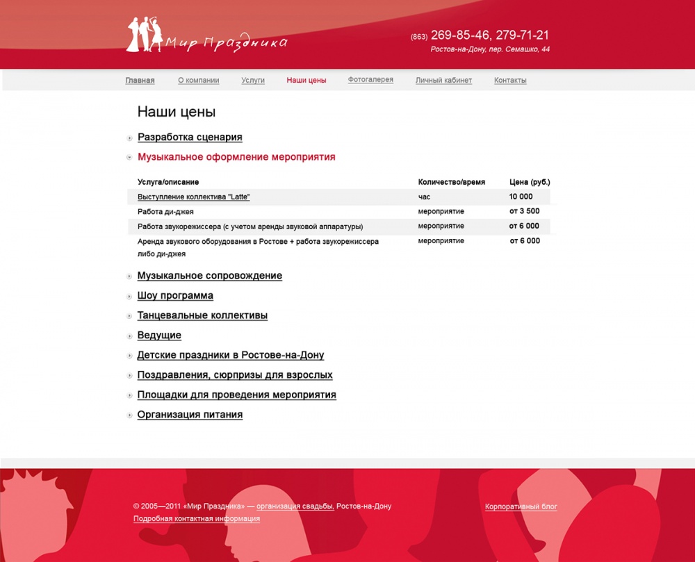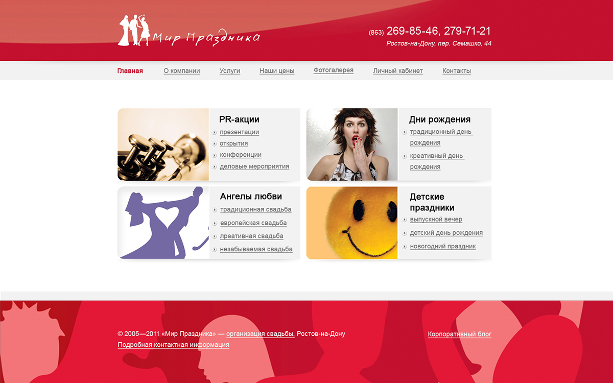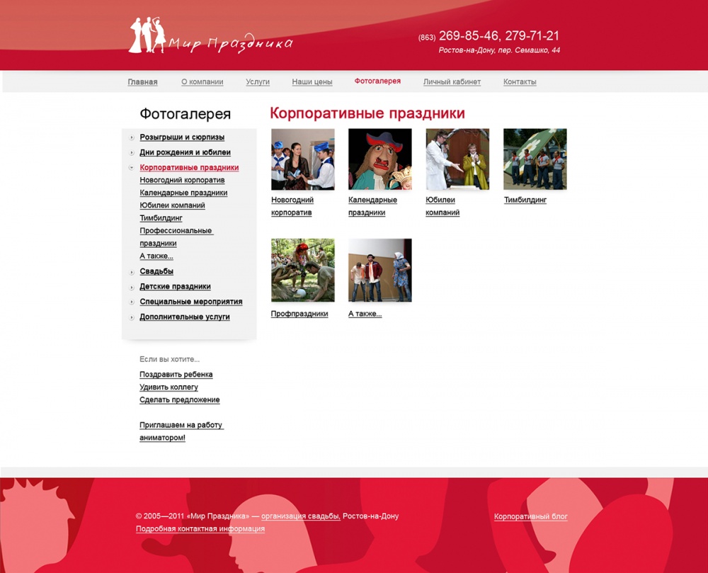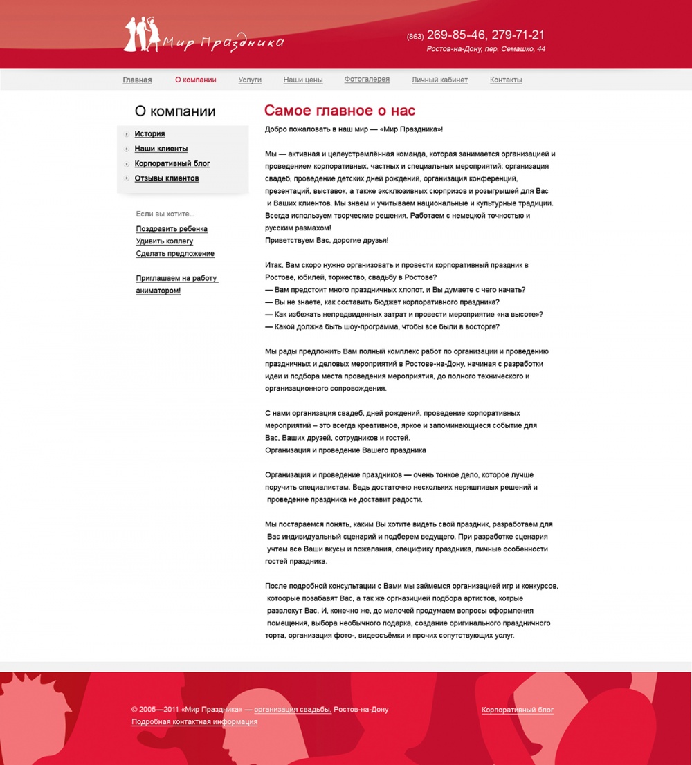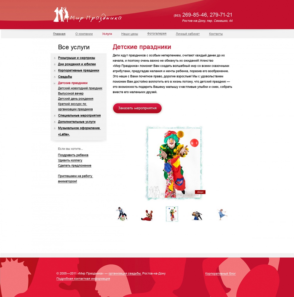 Главная / Наши работы / Сайт каталог / Сайт-визитка агентства праздников