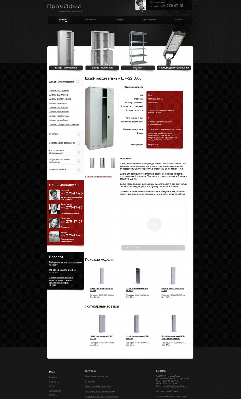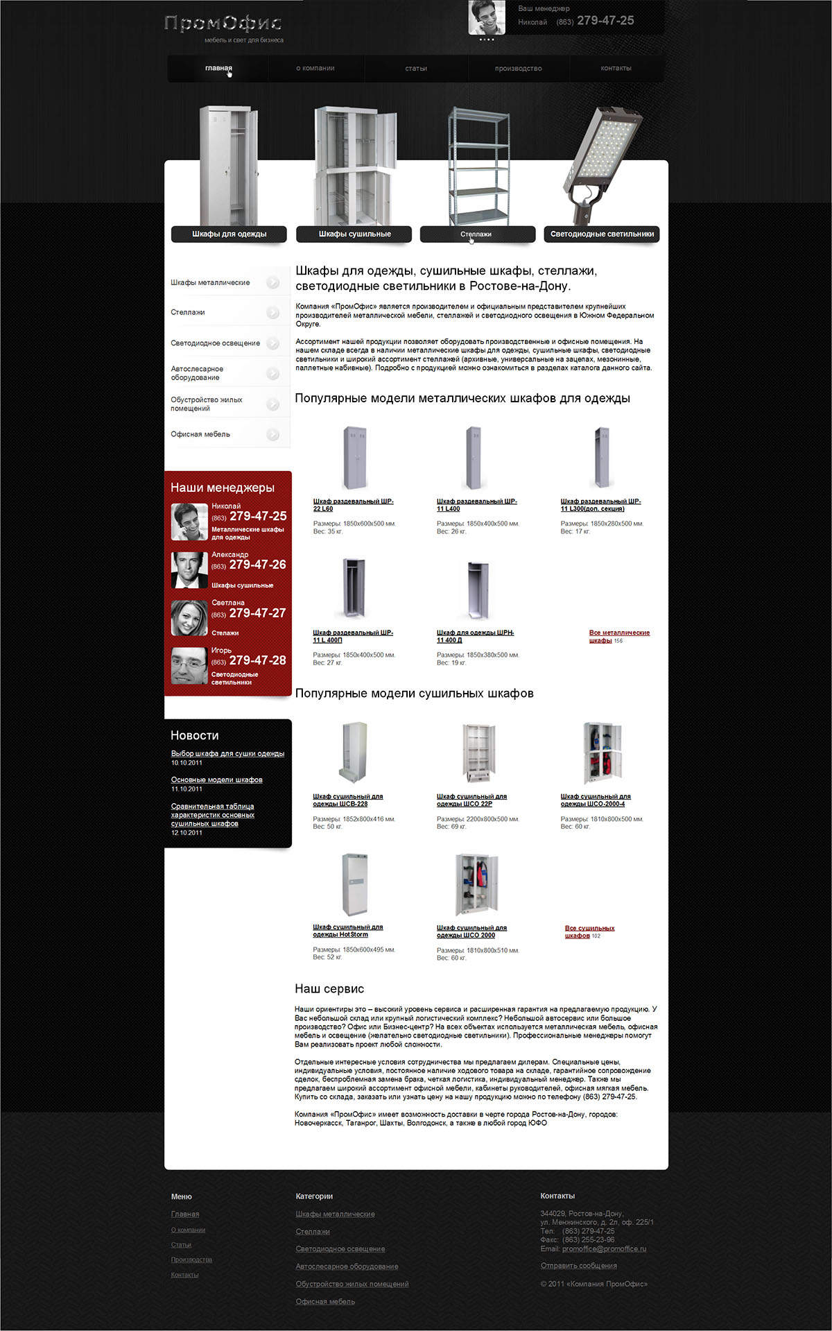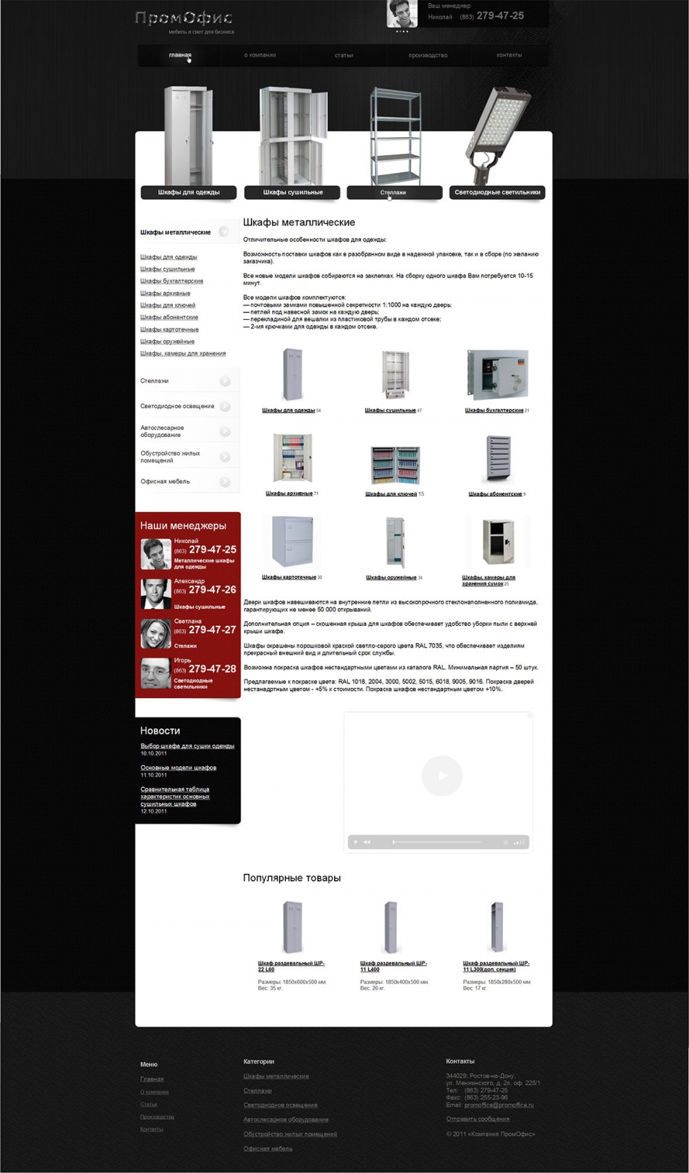 Оптовая и розничная продажа металлических шкафов и мебели промышленного назначения. В своем ассортименте ПромОфис предлагает металлические шкафы, бухгалтерские, архивные, офисные металлические шкафы и прочую промышленную мебель.