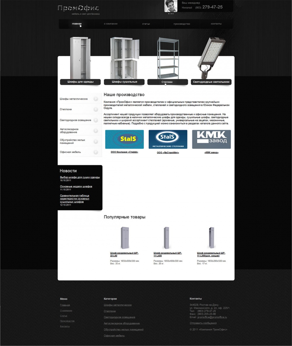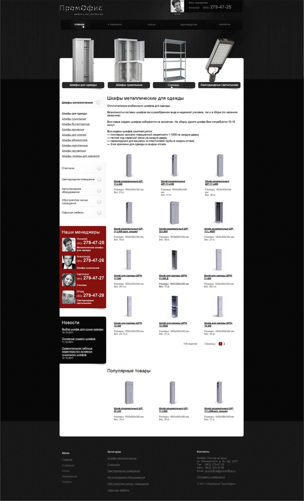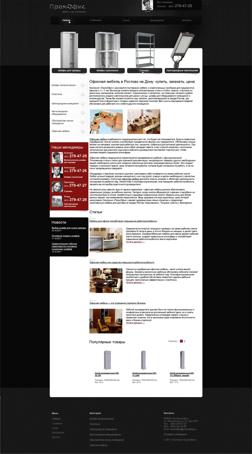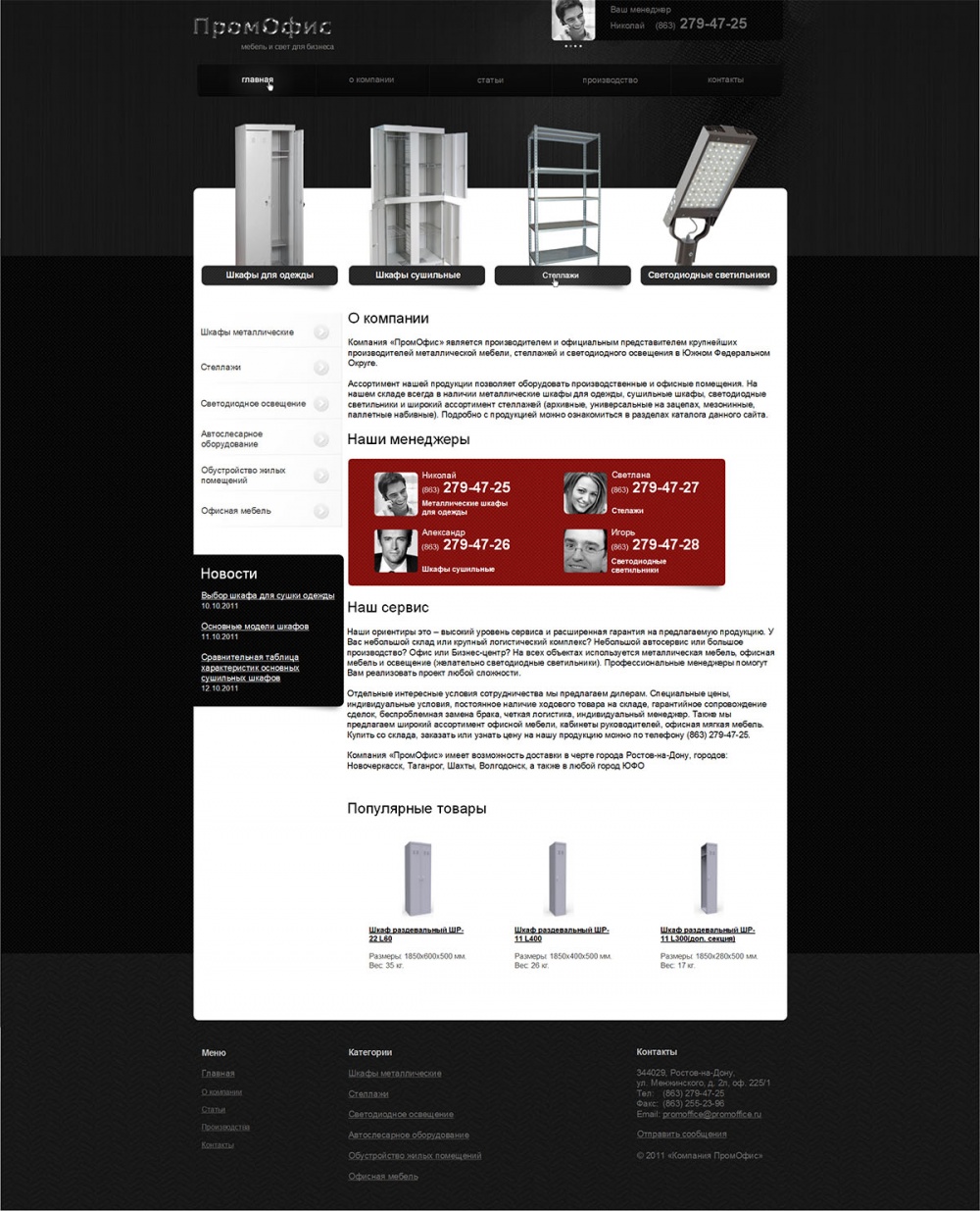 Оптовая и розничная продажа металлических шкафов и мебели промышленного назначения. В своем ассортименте ПромОфис предлагает металлические шкафы, бухгалтерские, архивные, офисные металлические шкафы и прочую промышленную мебель.