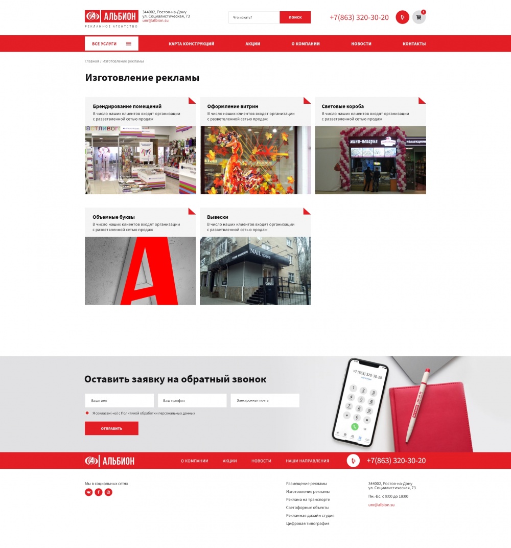 Сайт-каталог рекламного агентства