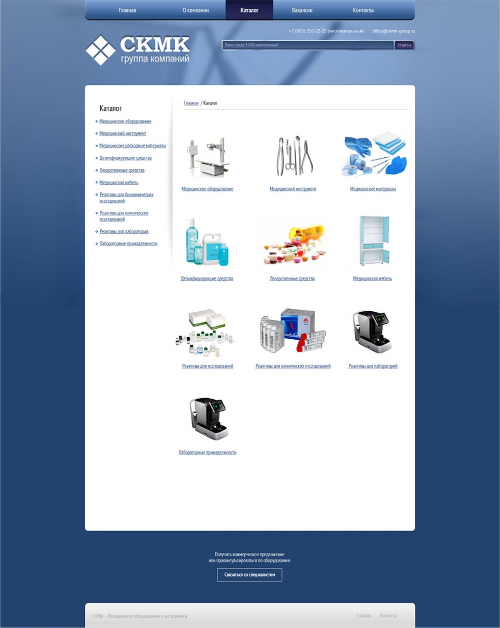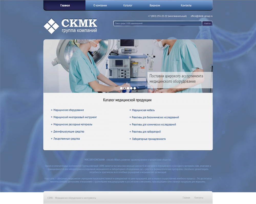 Основным направлением деятельности организации является комплексное оснащение медицинских учреждений и организаций различного медицинского профиля всем необходимым для обеспечения эффективного лечебно- диагностического процесса.